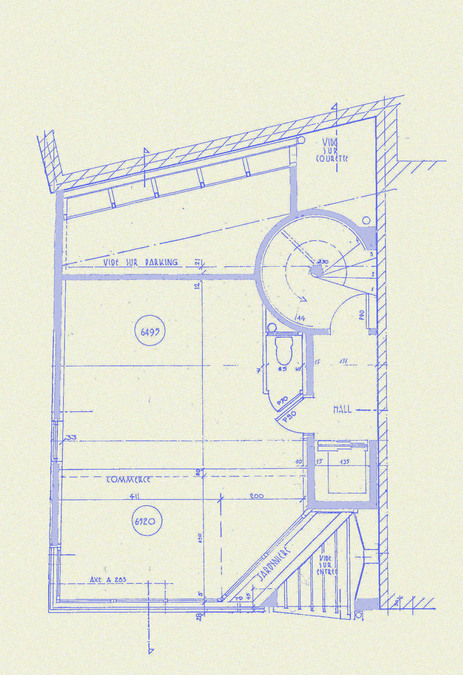 parcelle de surface réduite, l’immeuble est traité en volume, les règles d’urbanisme en vigueur lui ayant donné droit à trois façades. Il comprend un commerce en partie basse et deux appartements en étage. La