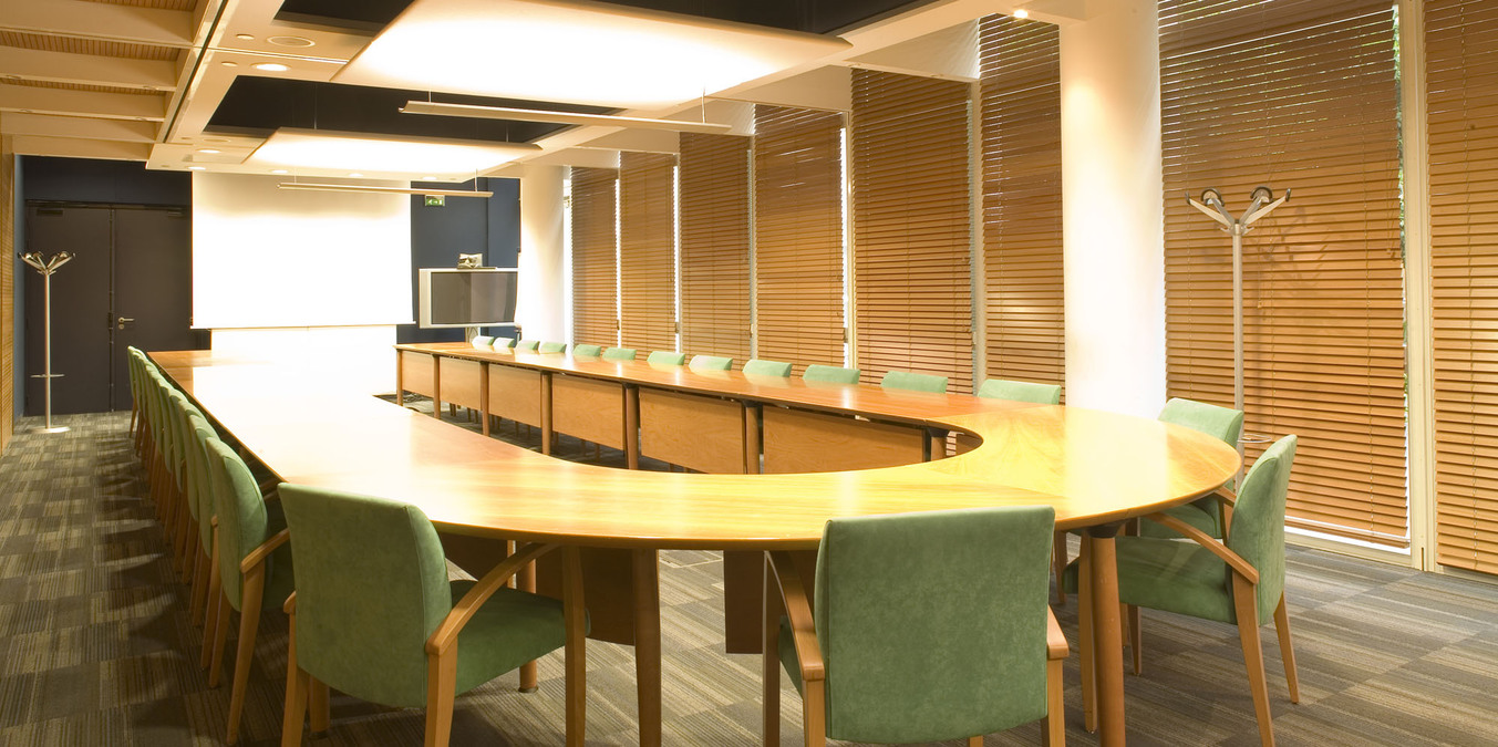 - Développement durable : L’ambiance très intime et la chaleur apportée par les matériaux de locaux spécifiques, comme la salle du Conseil, illustrent le positionnement de Rhodia par rapport au développement durable – en particulier l’usage de panneaux en bois blanc (Sapin blanc, Epicéa Scandinave), ainsi que les lambris, les listons ou encore les stores en bois.