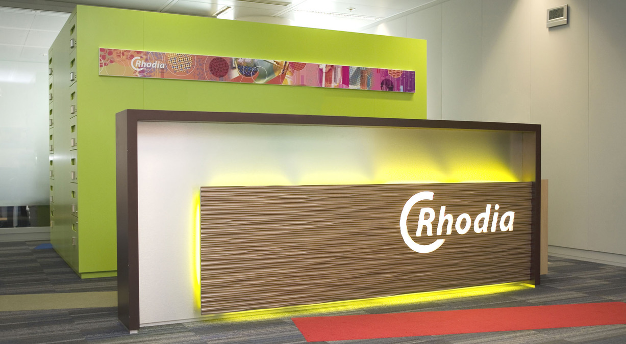 Rhodia est le premier groupe français producteur de produits chimiques. Le réaménagement de son siège social dans un immeuble de La Défense repose sur la nécessité, d’une part, de donner un outil performant aux 150 personnes qui y travaillent quotidiennement, d’autre part de conférer un caractère institutionnel au siège et traduire l’engagement de Rhodia en termes de développement durable.